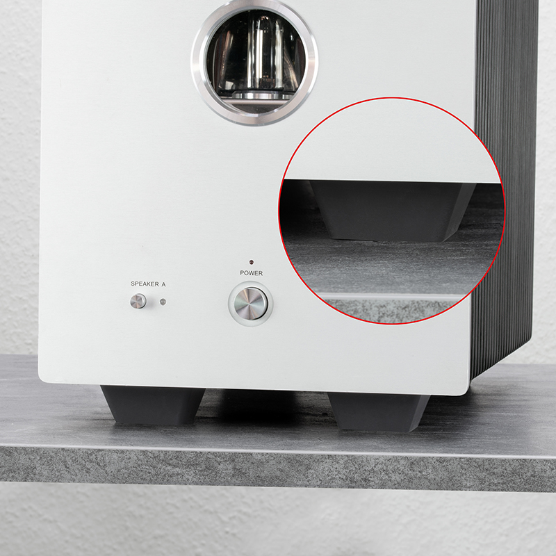 Mit den Dynavox Silicon-Elastomer Dämpfern erzielen Sie mit einfachen Mitteln eine hocheffektive Dämpfung von Resonanzen und Schwingungen für Ihre Hifi-Geräte, egal ob für den Plattenspieler, den CD-Player oder für Verstärkereinheiten und Boxen/Subwoofer. Im Set befinden sich 4 Dämpfer für eine Last von insgesamt bis zu 24 kg, die mit einem 3M Klebepad (auf der größeren Fläche des Trapezes) fixiert werden können. Natürlich eignen sich die Dämpfer auch für viele andere Geräte oder Gegebenheiten, wo unerwünschte Schwingungen oder Resonanzen verhindert werden sollen. Maße: kleine Fläche 21 x 21 mm, große Fläche 32 x 32 mm, Höhe von 17 mm (ohne Last). Verpackungsinhalt 4 Stück.