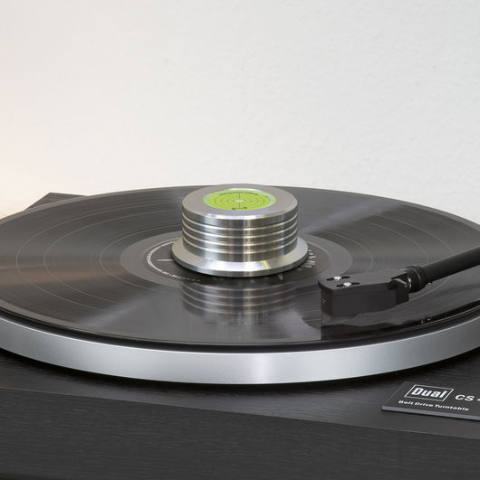 Dynavox Aluminium-Auflagegewicht für Plattenspieler. Mit integrierter Libelle zur präzisen Justierung der optimalen Lage Ihres Plattenspielers. Der Stabilizer verteilt das Gewicht gleichmäßig auf die Schallplatte und erhöht somit den Anpressdruck der Platte auf den Teller. Dadurch lässt sich insbesondere problematisches Plattenmaterial besser abtasten. Geeignet für alle Plattenspieler.